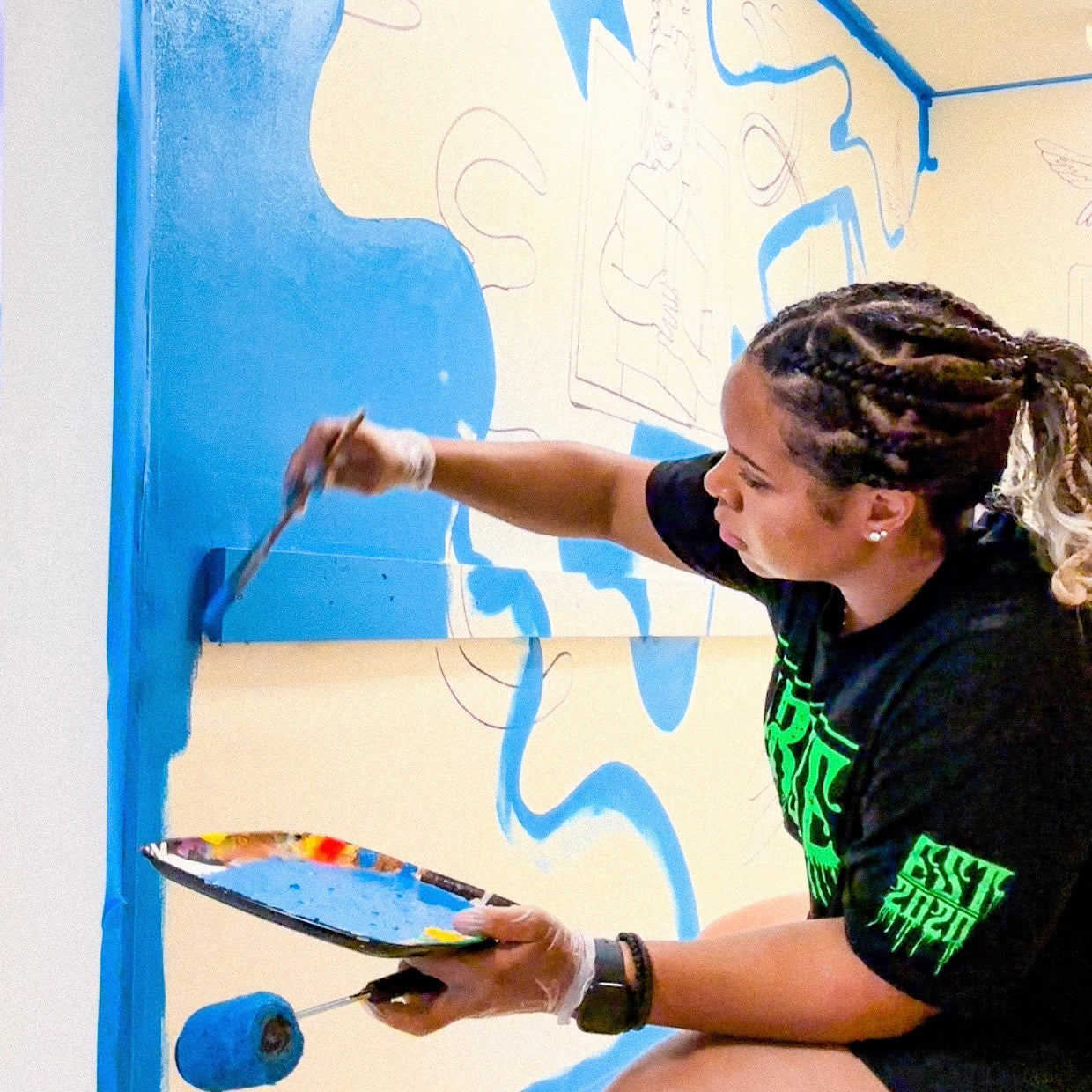 There's a little bit of Brooklyn in Atlanta now! Adeana was commissioned in 2021 to create two contributing two large 48" x 36" (3ft x 4ft) original art pieces for the second location of Brooklyn Tea. In addition she's also painted a mural on the restroom floor inspired by the tea can design. These originals and are can be visited in person at 329 Nelson St SW, Atlanta, GA 30313. Brooklyn Tea is a much needed vibe that you put on you check out for yourself!!
