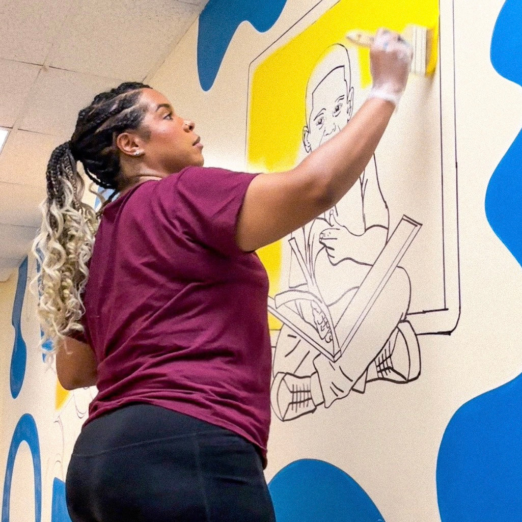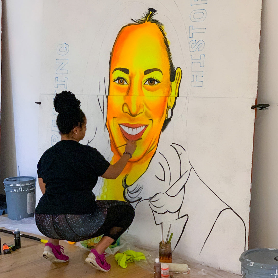 Adeana was granted another opportunity by Sonia Booker and Studio House Atlanta to create a mural in honor of the historic Vice President Elect Kamala Harris. This mural has also been made available as printed T-shirts and 16x16 canvas prints below. The mural can be visited and seen in person at 75 John Wesley Dobbs Ave, Atlanta, Ga.