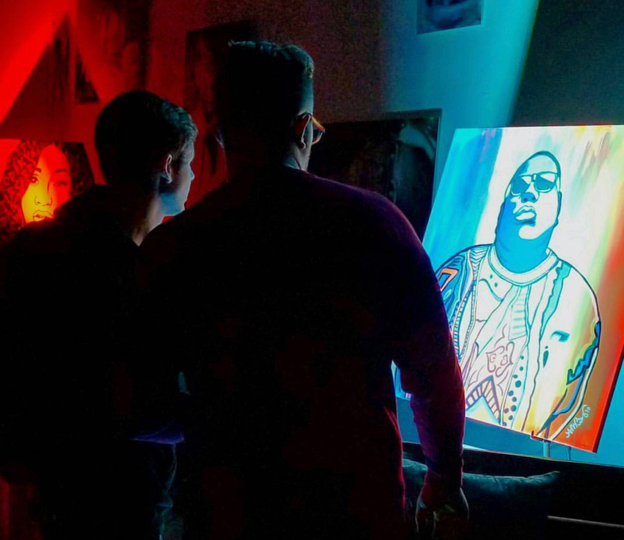 Adeana gifted producer/artist Childish Major a neon painting of his debut album "Woo$Ah." (Feb 2018)