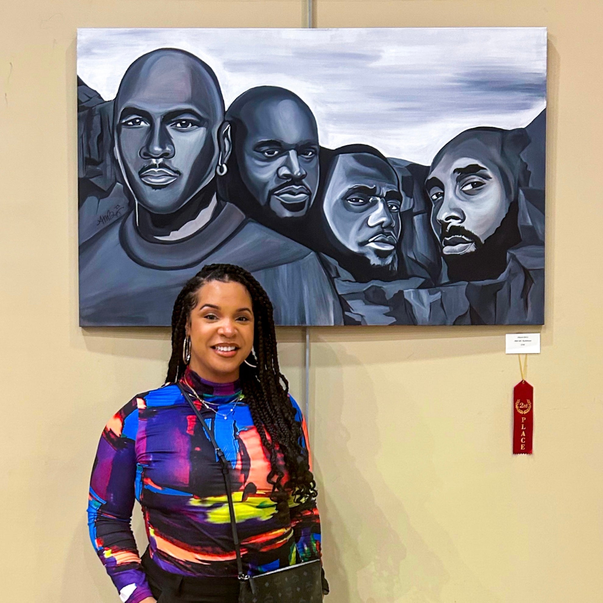 Earlier in the year Adeana had the opportunity to feature 15 of her original pieces at the Artist of color exhibit at the North Augusta Cultural Arts Center. In addition to the feature she successfully sold 6 original through the duration of the exhibit and placed second with her "NBA Mt. Rushmore."